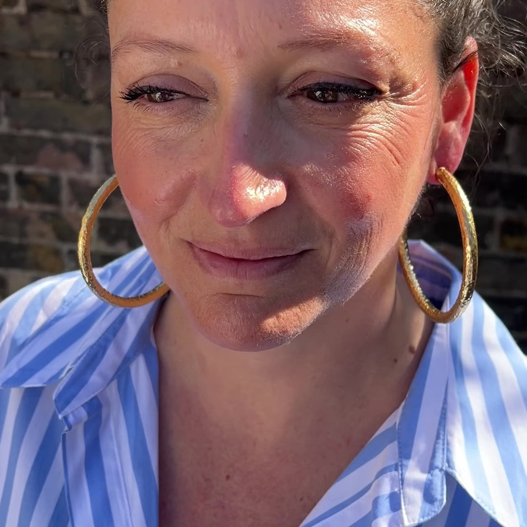 LARGE HAMMERED GOLD HOOP EARRINGS