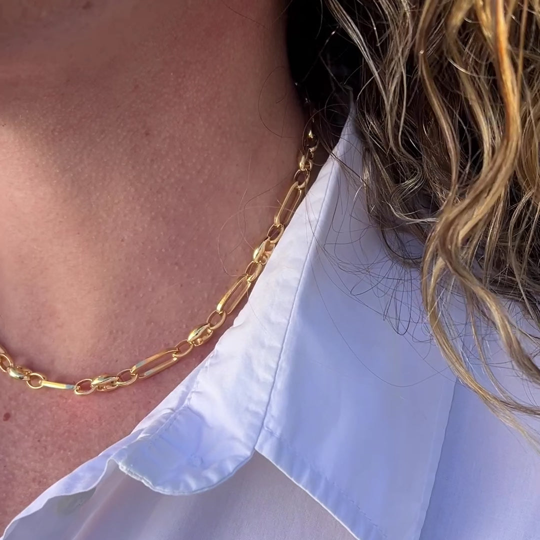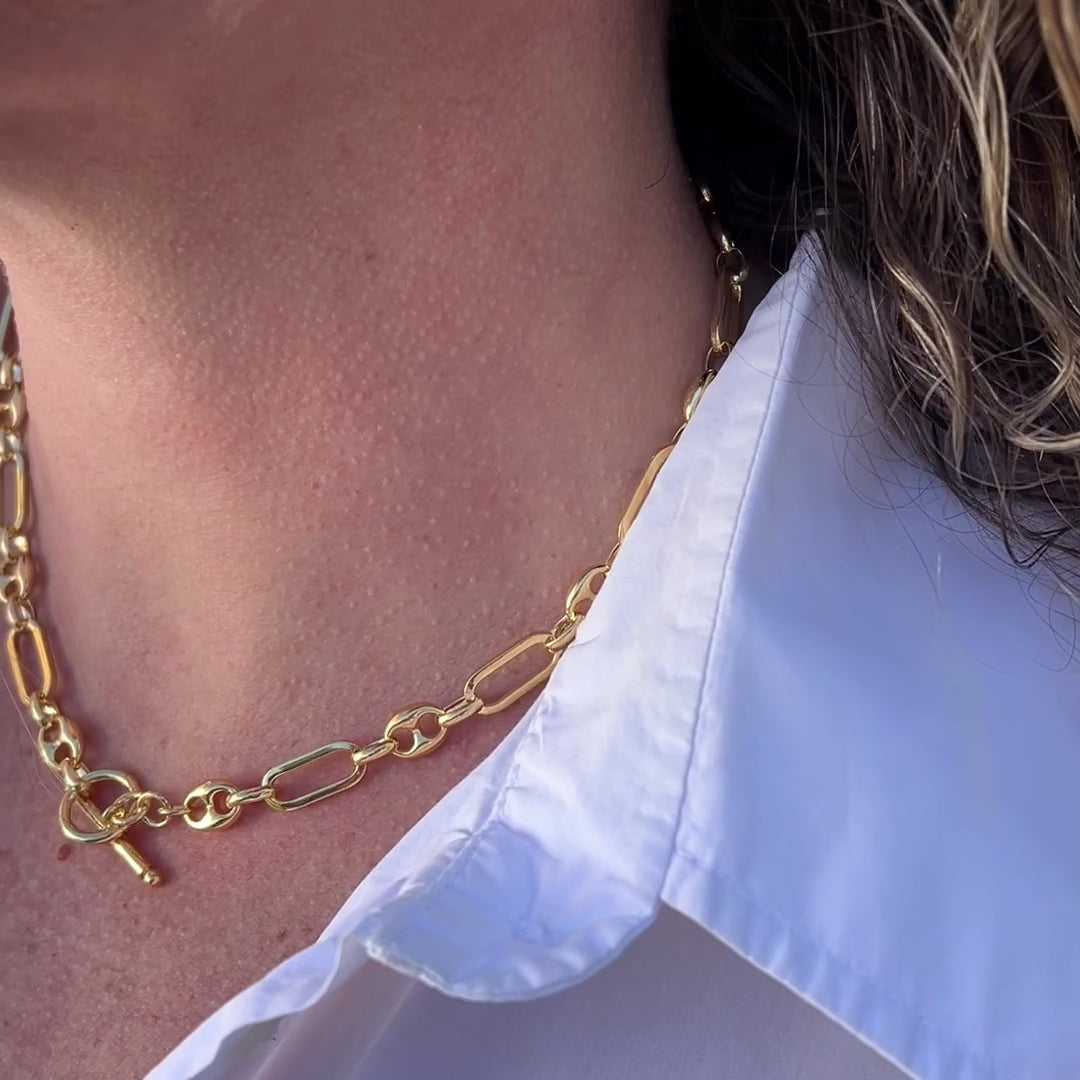 GOLD MIXED LINK T-BAR CHAIN NECKLACE