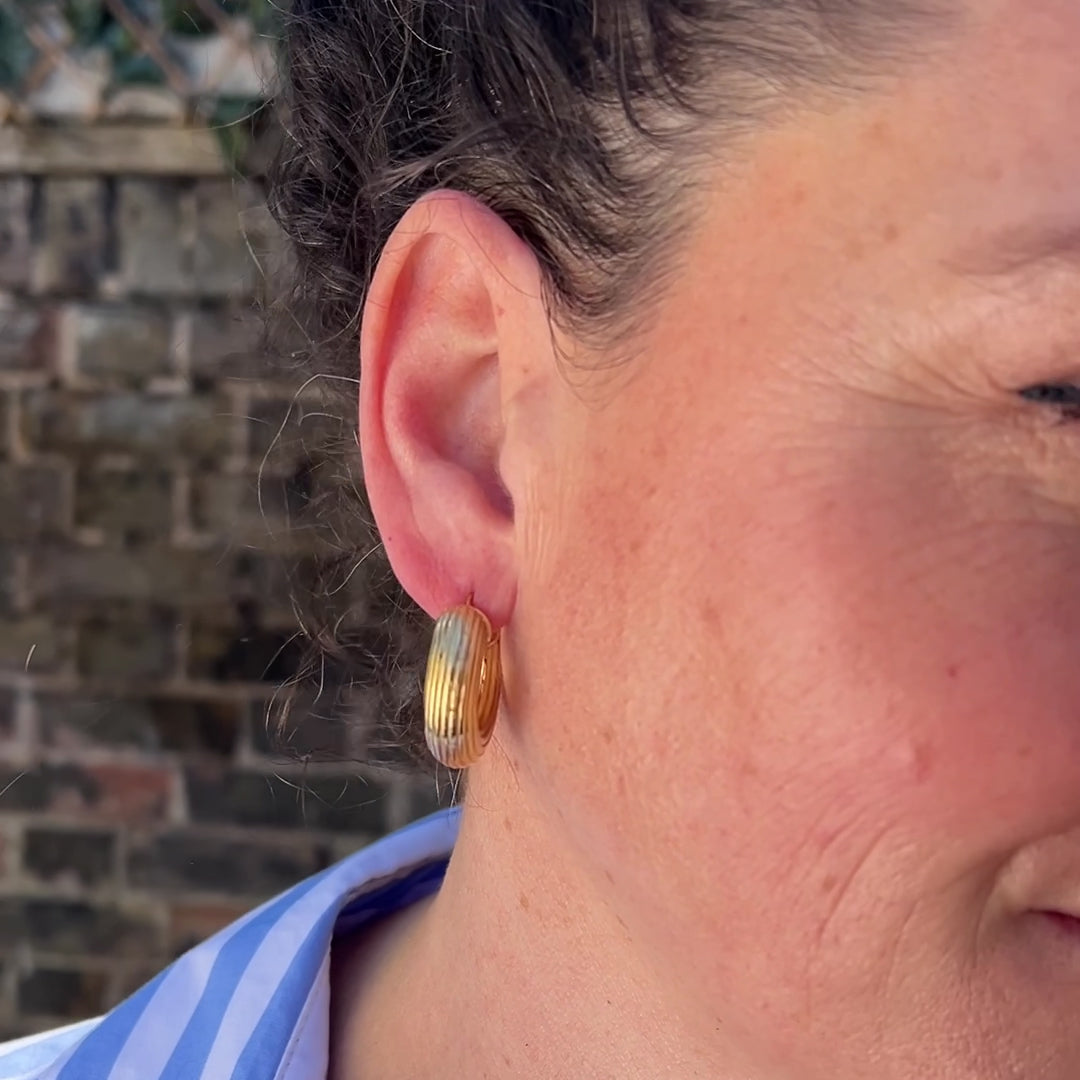GOLD RIBBED HOOP EARRINGS
