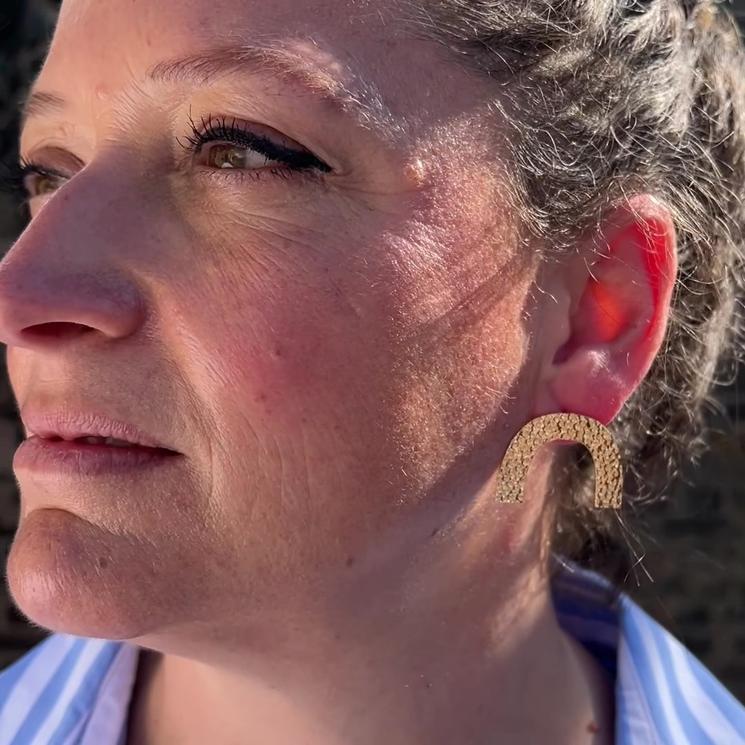 18k gold plated sterling silver hammered half moon earrings inspired by the iconic steps at the Walpole Tidal pool in Margate.