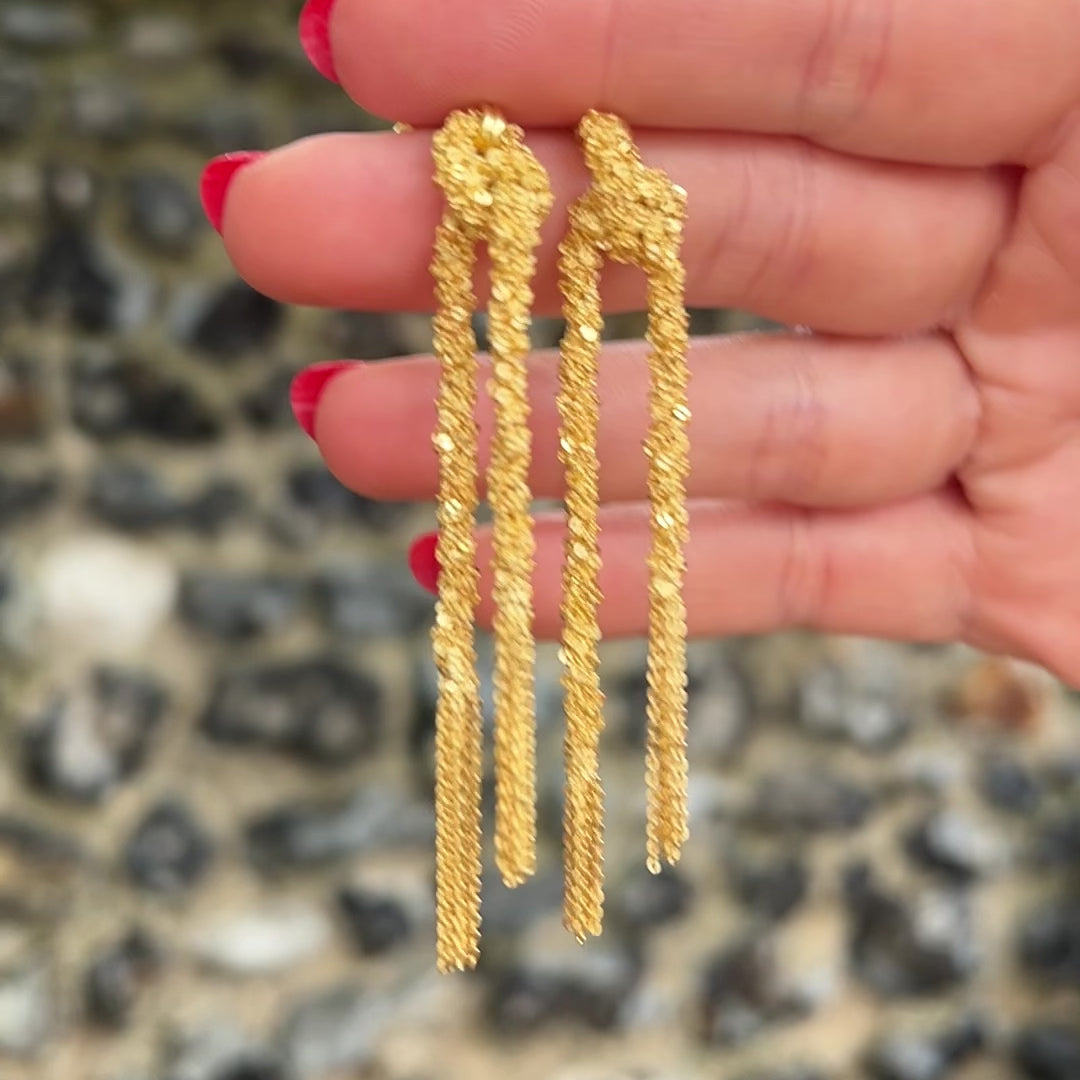 Hand made in Italy using delicately woven threads of 18k gold plated silver chain with two strands knotted together and 4cm tassel ends.