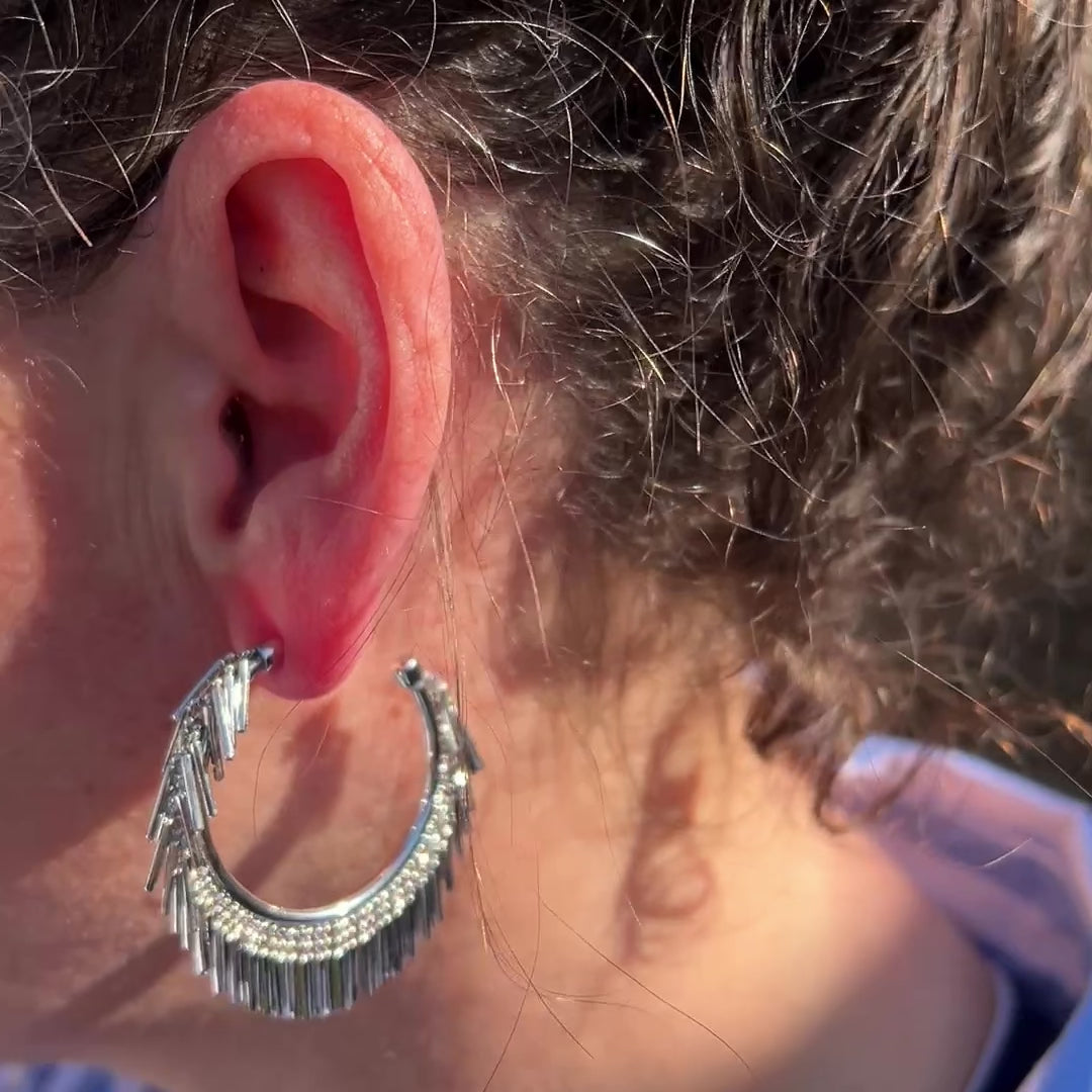 SMALL SILVER TASSEL HOOP EARRINGS